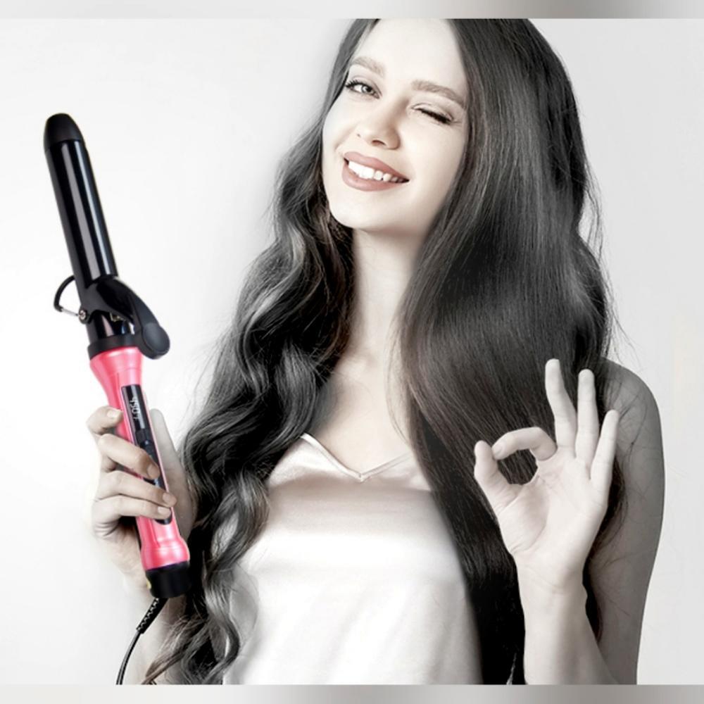 【PROFESSIONAL GLIDER-HAIR CARE WITHOUT PULLING】Smooth ceramic tourmaline-coated surface to distribute heat evenly, making curls glide through easily! Heated ceramics produce negatively charged ions to protect natural healthy hair from damage.