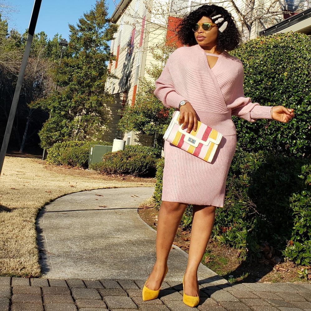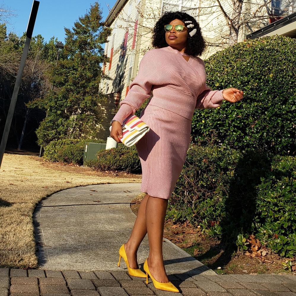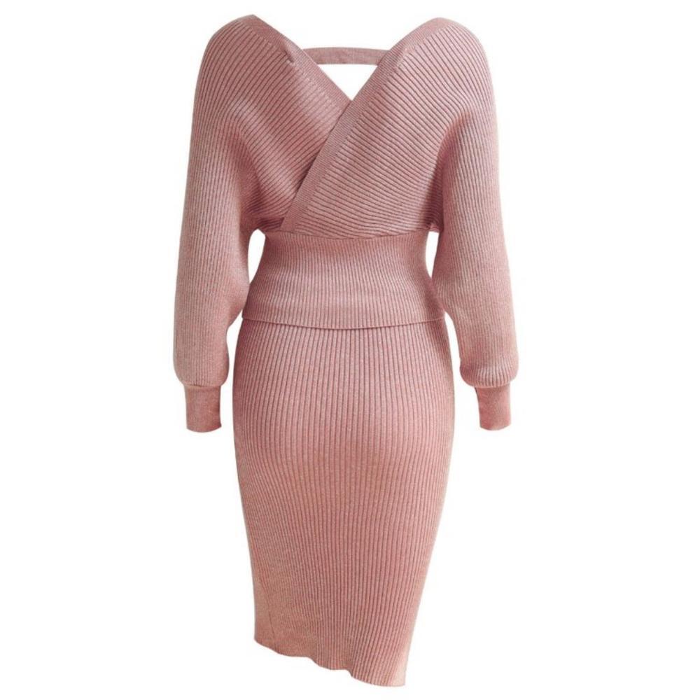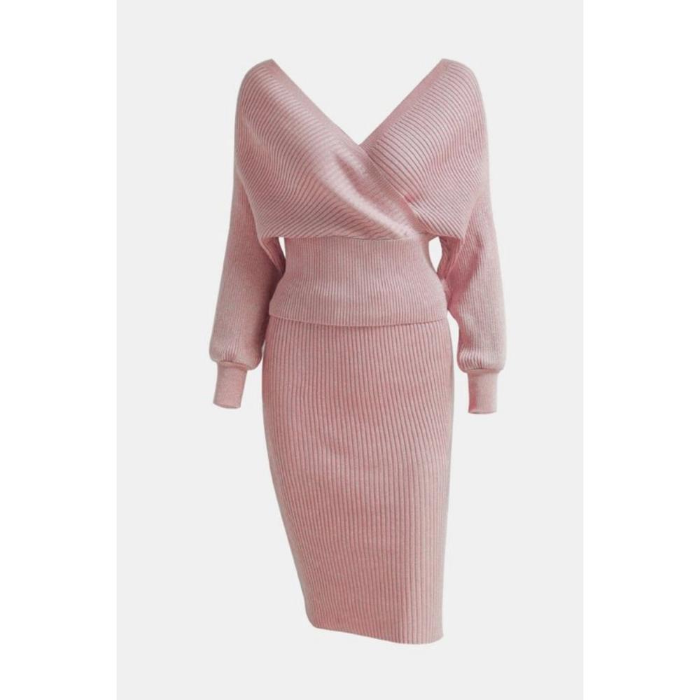 Features: Dolman sleeves, two-piece set, rib-knit