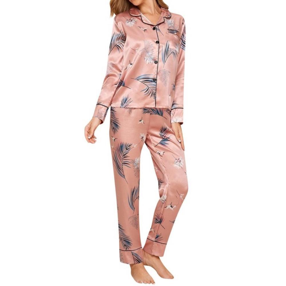 Single-breasted, lapel, floral plant print, chest pocket, color block, long sleeve long pants, pajama set design make you more charming. This Nlife women's blouse is designed with stretchy polyester blend material, leisure, lose fit style to flatter your figure. It is always a good choice for all seasons, during daily, indoor, leisure, and sleeping.