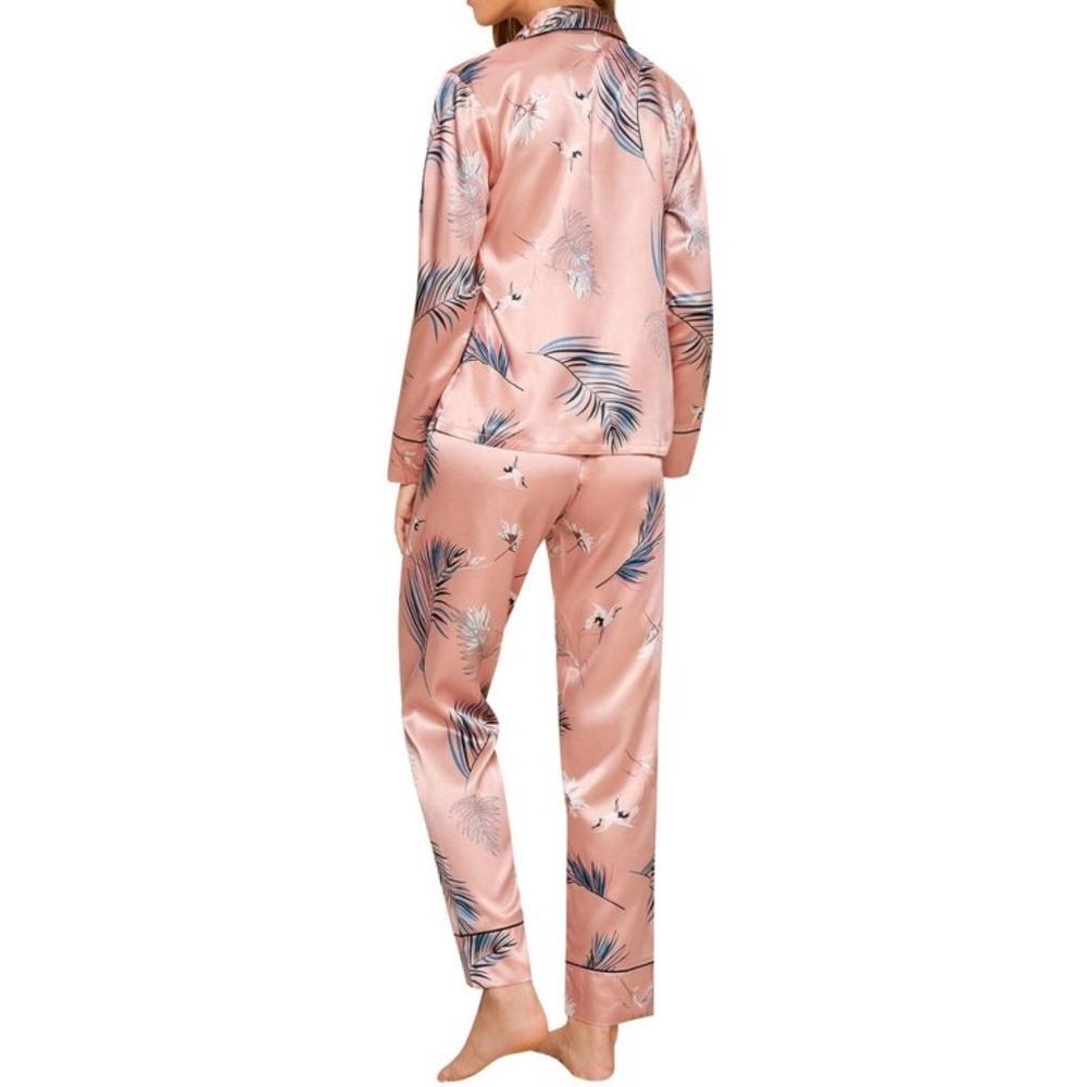 Features: Single-breasted, lapel, floral plant print, chest pocket, color block, long sleeve long pants, pajama set, casual style for everyday comfort.