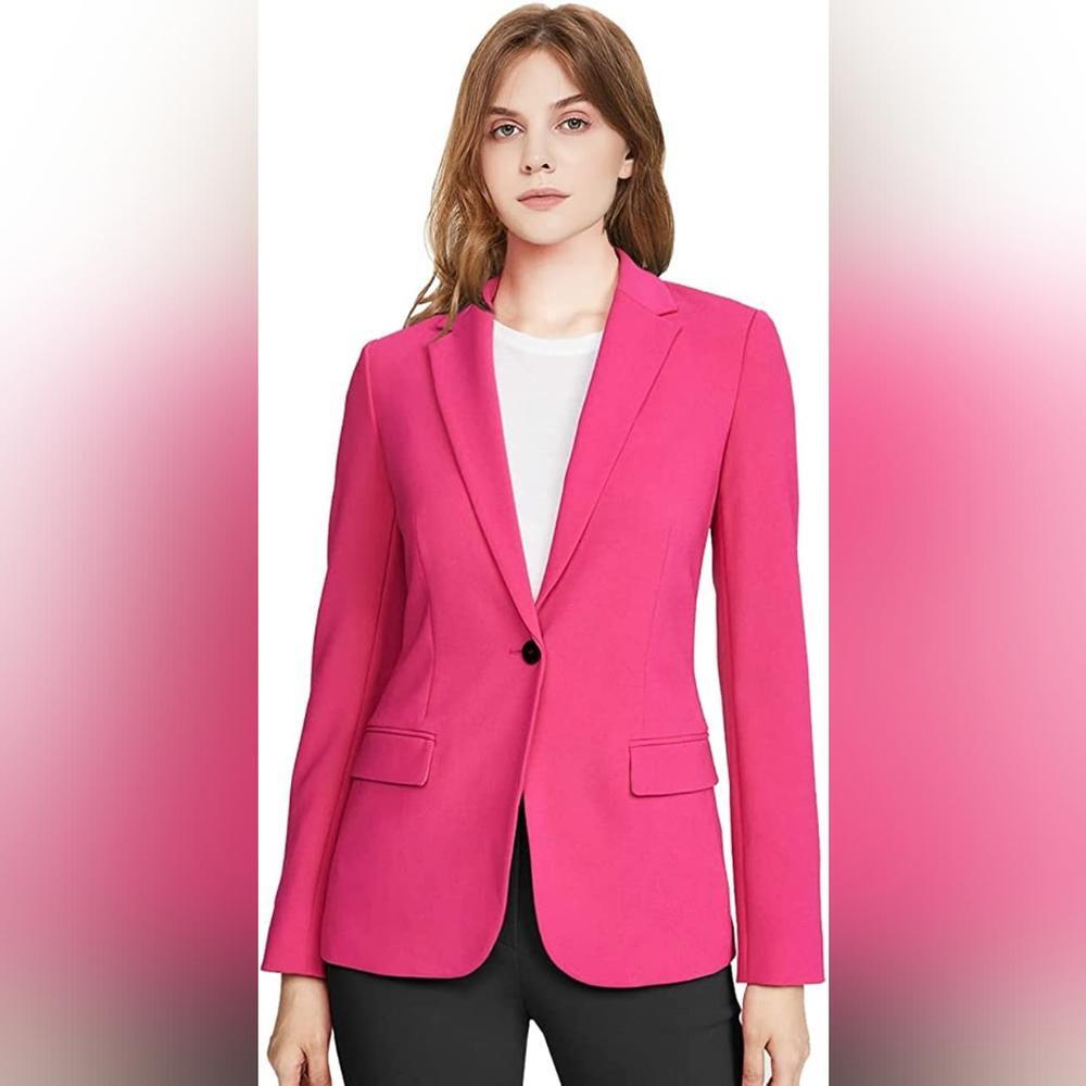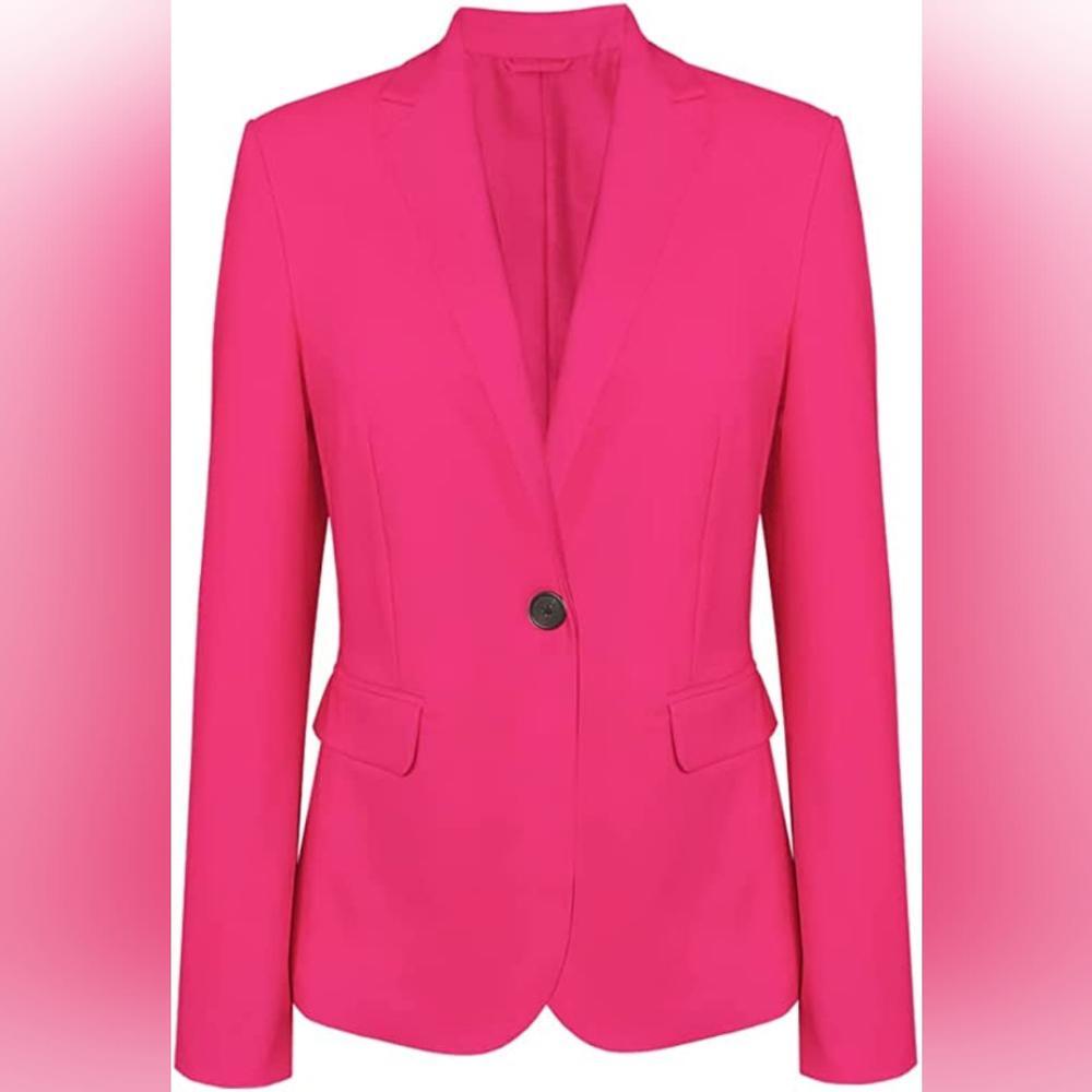 Women Long Sleeve Blazers for Work Professional Notch Lapel One Button Pink Blazer Women with Pocket.