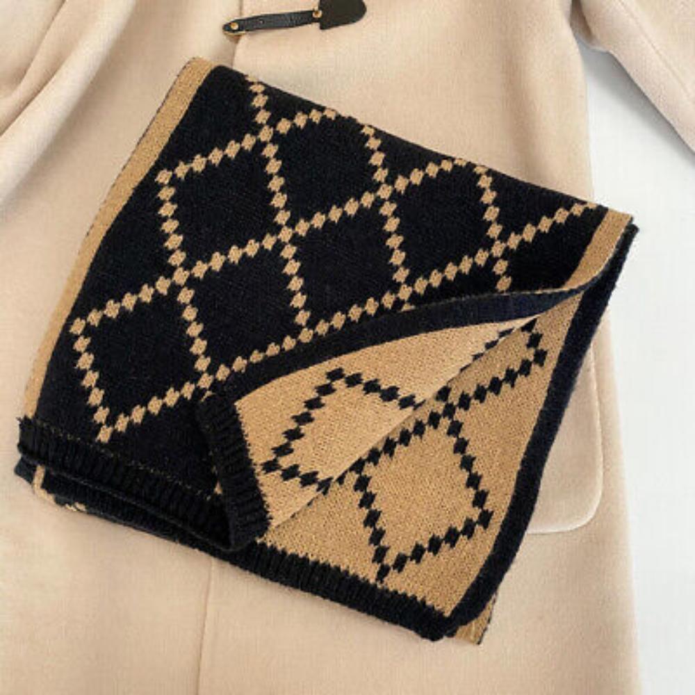 Diamond pattern knit scarf. So soft and cozy. Great quality double knitting and reversible inside out for contrasting color options.