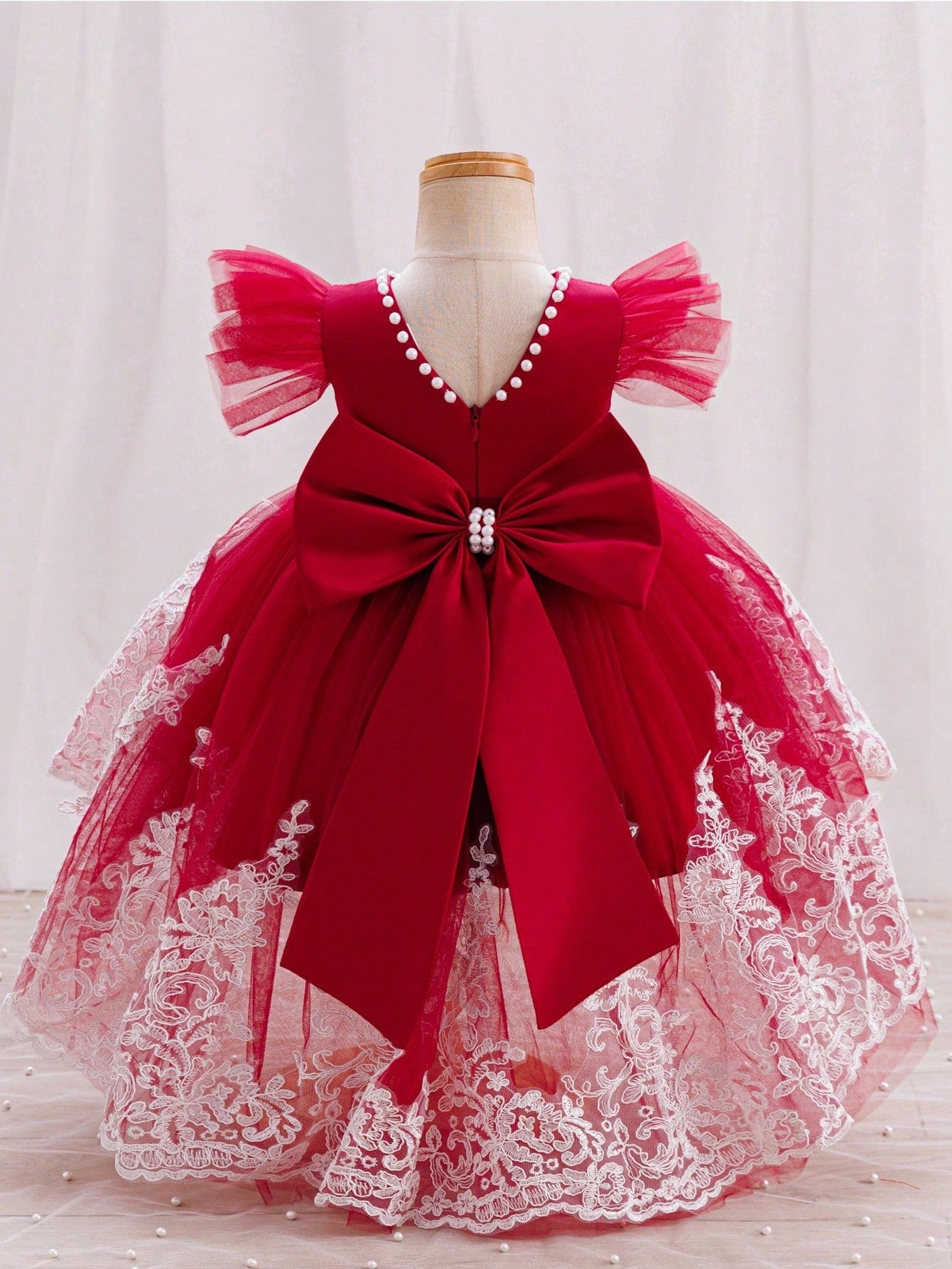 Kids Baby Girl V-Back Mesh Tail Birthday Party Dress, Sequin Decor Bow Back, Pink, Suitable For 1st Birthday, Banquet Baby Princess Dress Red Baby Girl Christmas Dress Fall Winter